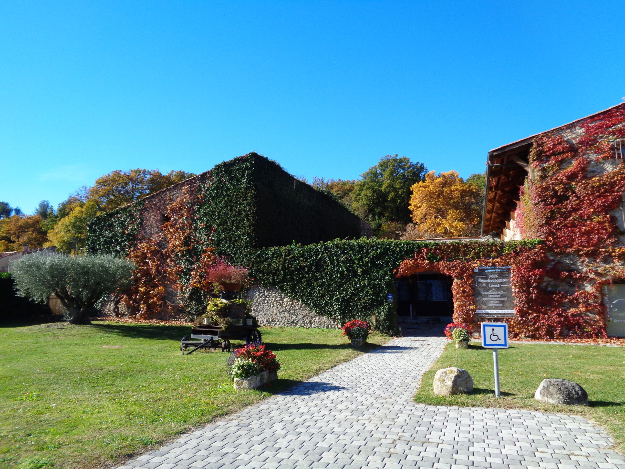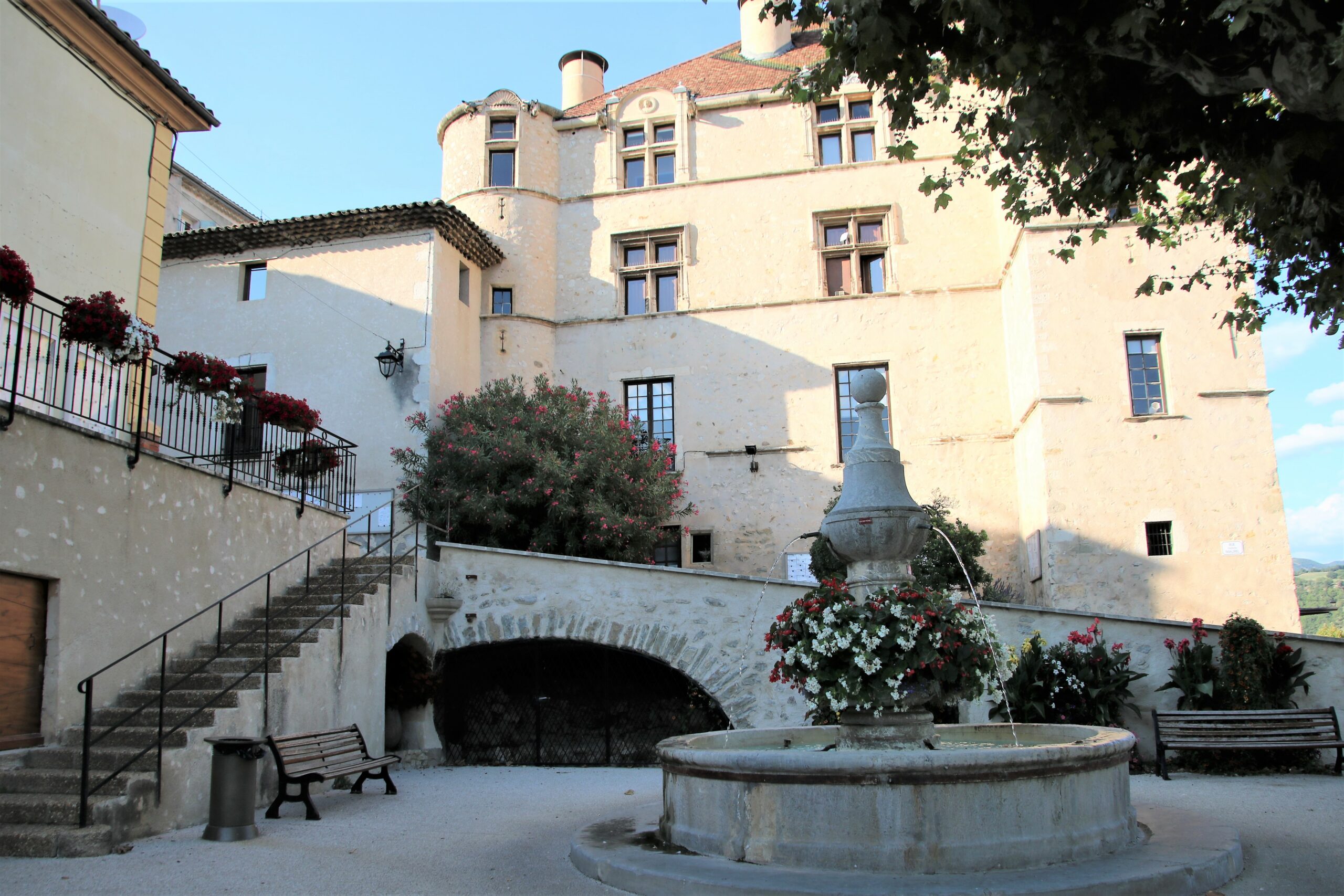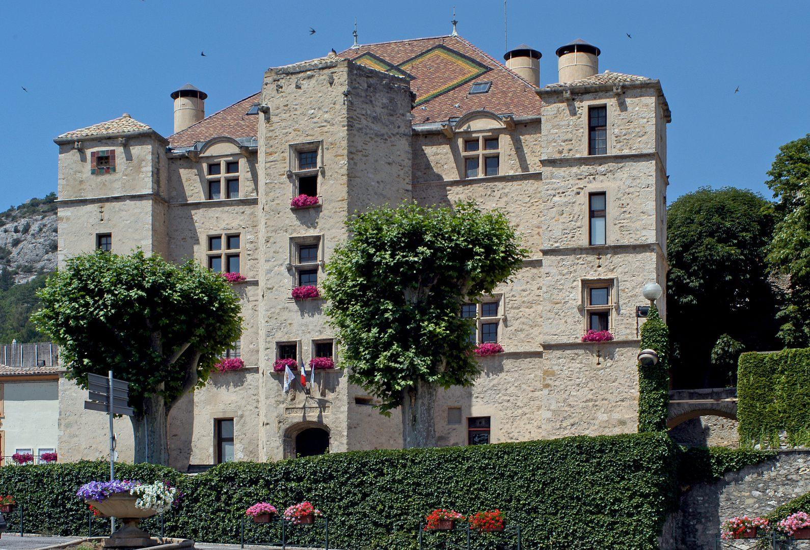 Château gothique- renaissance / l’Auberge du Château /Mairie « construit par le seigneur Pierre de Glandeves au début du XVI ème siècle, le rez-de-chaussée est gothique alors que les étages sont de style renaissance. L’escalier, classé monument historique depuis 1969 présente 16 statuettes mythologiques, uniques dans le Sud de la France, œuvre d’un artiste florentin. A l’origine, l’entrée du château était au nord en passant par l’allée cavalière. Il a été acheté par la commune en 1947 et depuis est devenu la Mairie ».Château gothique- renaissance / l’Auberge du Château /