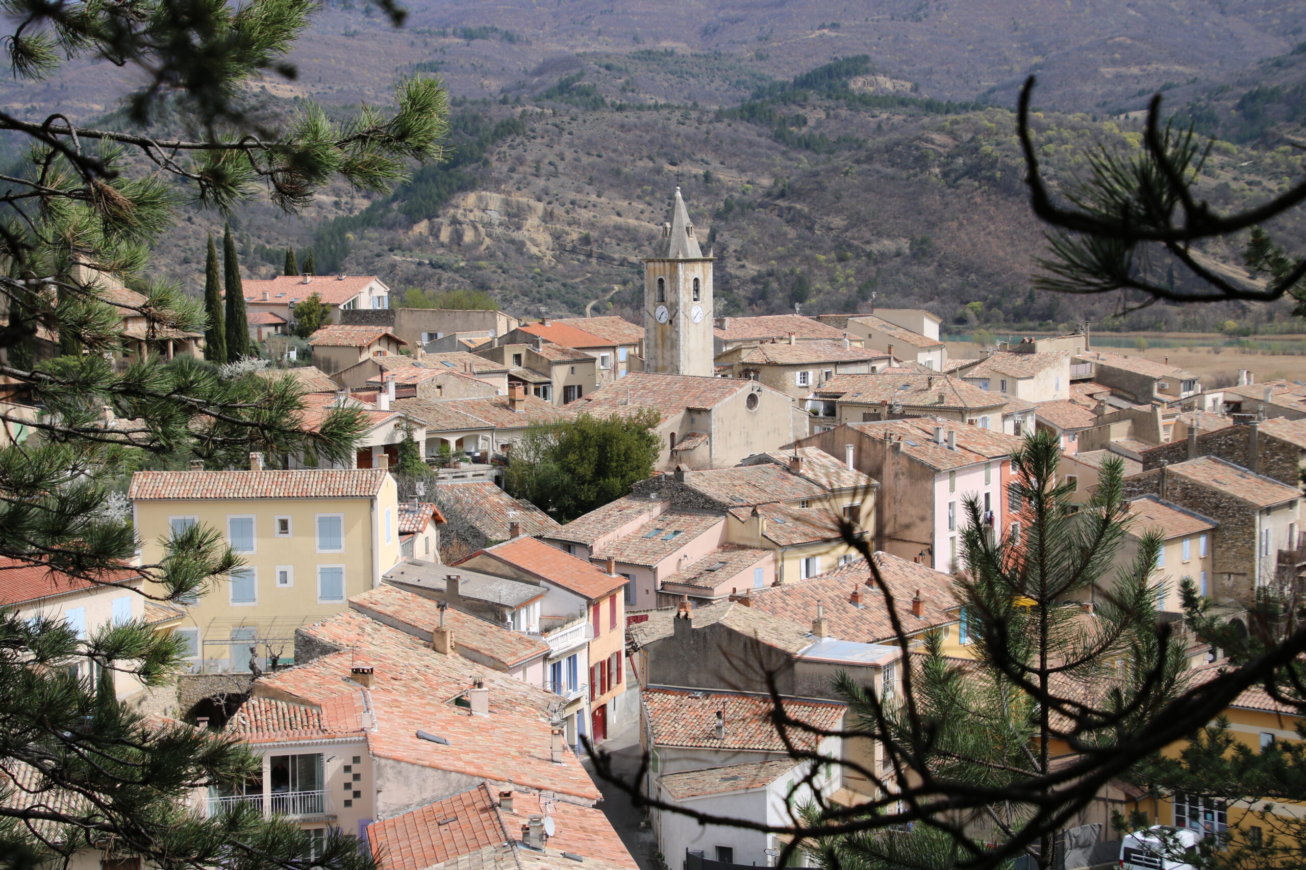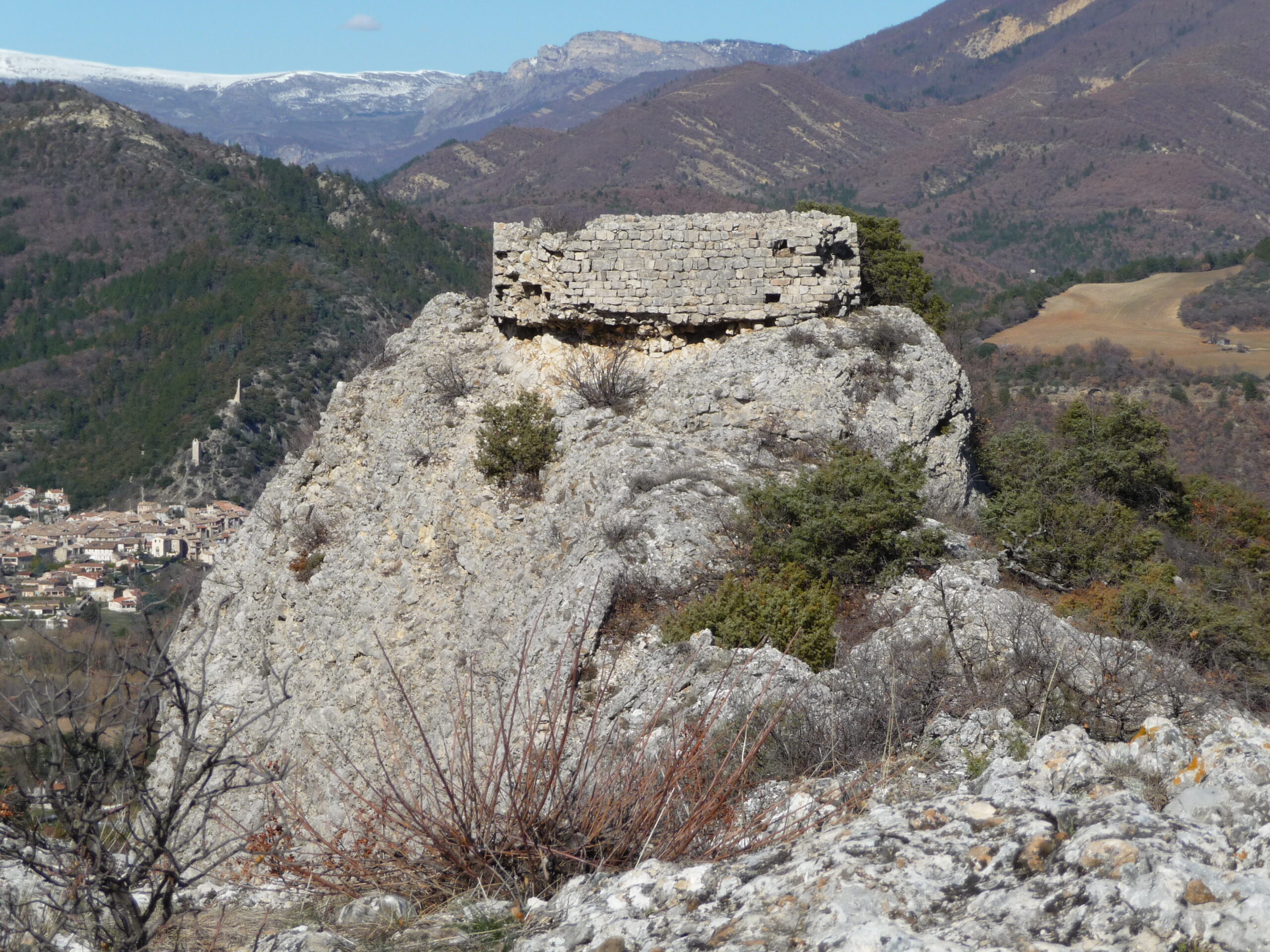 En dessous, il y a une vaste citerne creusée dans le roc et le village perché : Villevieille.
